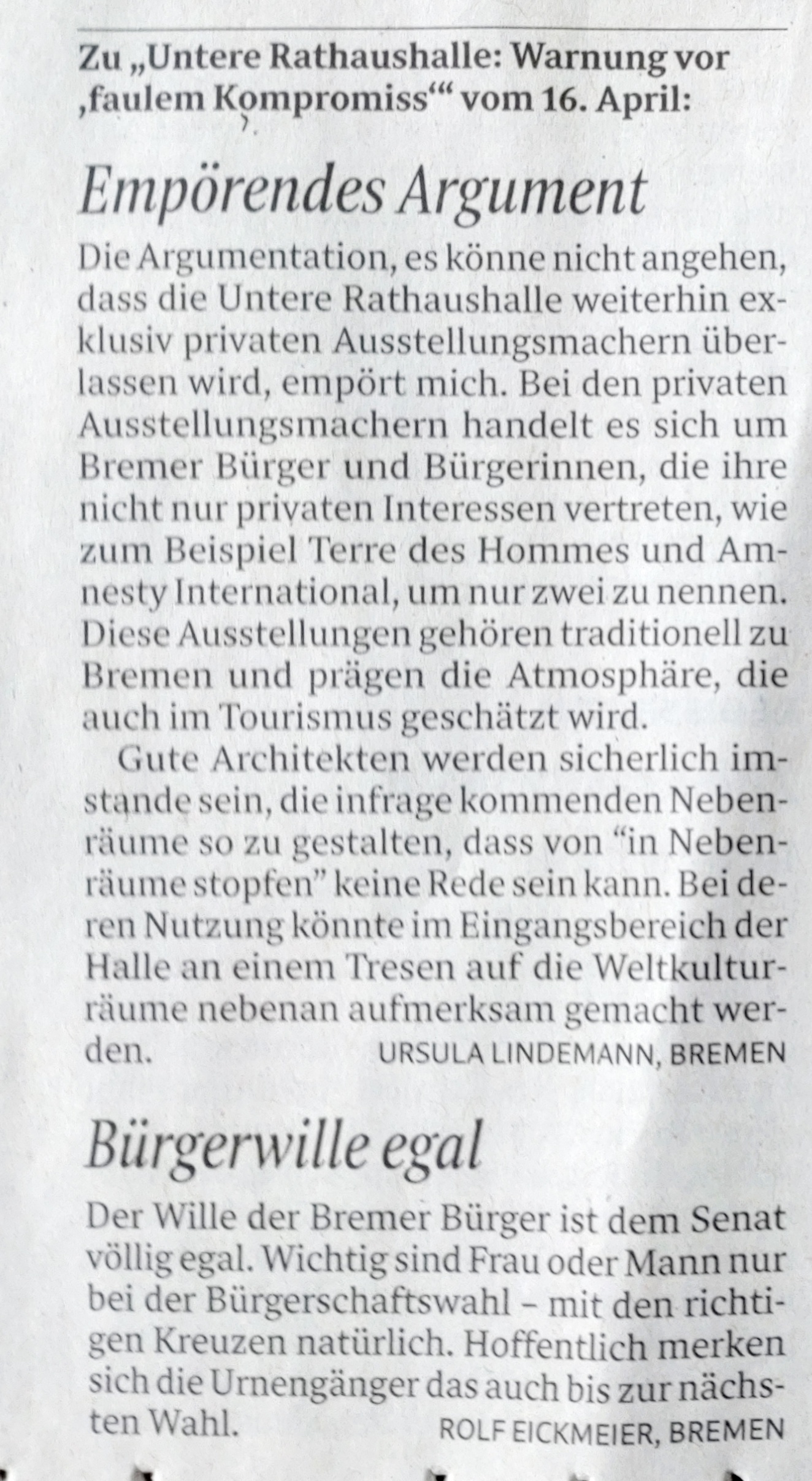 - https://www.weser-kurier.de/bremen/politik/petition-gegen-ausstellungsende-in-der-unteren-rathaushalle-in-bremen-doc7tjzld09fus1iq571j35